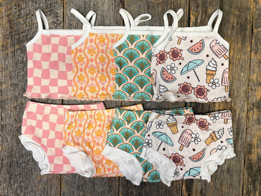 Girls ribbed bamboo 2 piece set - ice cream
